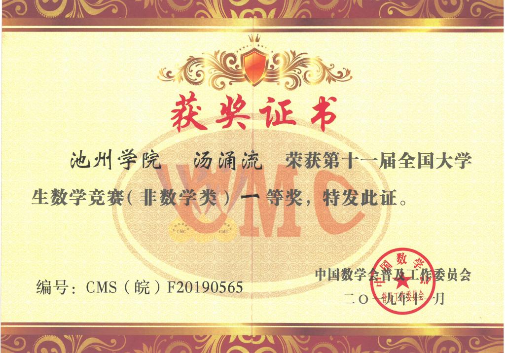 近日,第十一届全国大学生数学竞赛安徽赛区获奖结果揭晓,必赢官网荣获非数学专业组一等奖1项,二等奖1项,三等奖2项,其中2017级环境工程专业学生汤涌流(指导教师:周恺)获得一等奖,2018级财务管理专业学生周峰(指导教师:王小可)获得二等奖。
